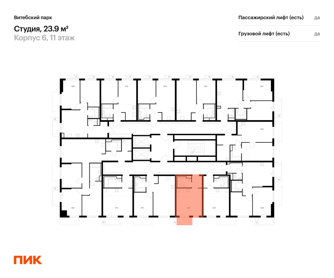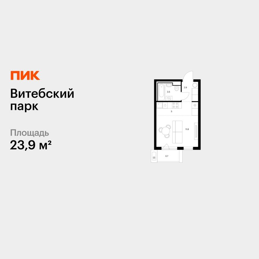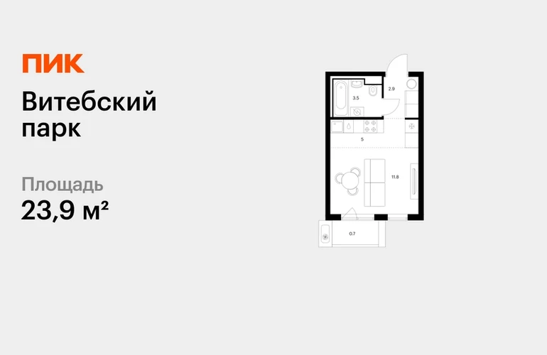 Продаётся квартира-студия площадью 23.90 кв.м на 11 этаже 12 этажного дома (Корпус 6, секция 1) проекта ПИК Витебский парк. Светлый просторный подъезд на уровне земли, функциональная планировка, большие окна, с отделкой. <br> <br>Жилой квартал «Витебский парк» находится во Фрунзенском районе Санкт-Петербурга, в 15 минутах пешком от метро «Обводный канал». А в 2027 году всего в паре минут от проекта планируют открыть станцию метро «Боровая». <br> <br>В квартал входят 3 детских сада, школа и 7 жилых домов с дворами-парками, куда не могут зайти посторонние люди и заехать автомобили. Школа на 1250 мест и детский сад на 350 мест откроются одновременно с заселением первой очереди, это значит, что жители проекта смогут отдать своих детей в новые образовательные учреждения на территории квартала. <br> <br>Во дворах приятно отдыхать, знакомиться с соседями и даже заниматься йогой, а для детей мы построим детские площадки. Рядом появятся современные спортивные площадки. На первых этажах домов откроются магазины, кафе и другие сервисы. Через весь жилой район протянется широкий пешеходный бульвар для прогулок и спорта. <br> <br>Рядом с «Витебским парком» есть всё для комфортной жизни: магазины, торговые центры, фитнес-клубы, кафе и рестораны, а ещё детские сады, школы, вузы и поликлиника. Артикул - 1005189О застройщике