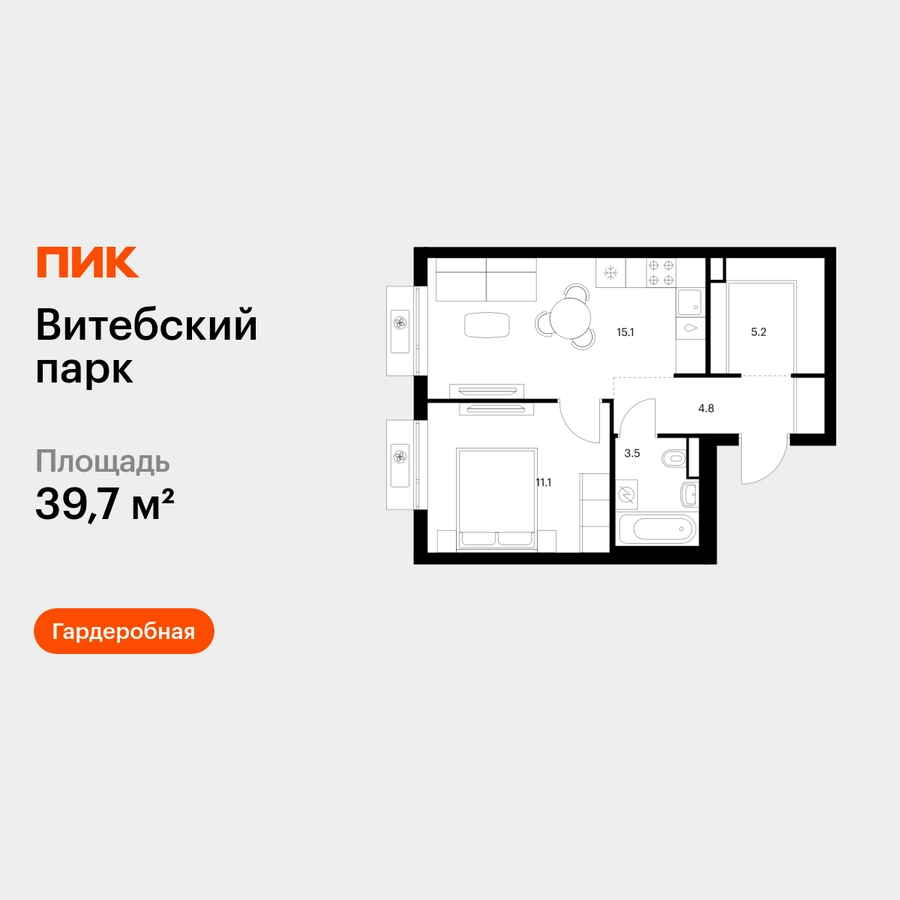 Продаётся 1-комн.квартира площадью 39.70 кв.м на 6 этаже 12 этажного дома (Корпус 6, секция 4) проекта ПИК Витебский парк. Светлый просторный подъезд на уровне земли, функциональная планировка, большие окна, с отделкой. <br> <br>Жилой квартал «Витебский парк» находится во Фрунзенском районе Санкт-Петербурга, в 15 минутах пешком от метро «Обводный канал». А в 2027 году всего в паре минут от проекта планируют открыть станцию метро «Боровая». <br> <br>В квартал входят 3 детских сада, школа и 7 жилых домов с дворами-парками, куда не могут зайти посторонние люди и заехать автомобили. Школа на 1250 мест и детский сад на 350 мест откроются одновременно с заселением первой очереди, это значит, что жители проекта смогут отдать своих детей в новые образовательные учреждения на территории квартала. <br> <br>Во дворах приятно отдыхать, знакомиться с соседями и даже заниматься йогой, а для детей мы построим детские площадки. Рядом появятся современные спортивные площадки. На первых этажах домов откроются магазины, кафе и другие сервисы. Через весь жилой район протянется широкий пешеходный бульвар для прогулок и спорта. <br> <br>Рядом с «Витебским парком» есть всё для комфортной жизни: магазины, торговые центры, фитнес-клубы, кафе и рестораны, а ещё детские сады, школы, вузы и поликлиника. Артикул - 1005553О застройщике