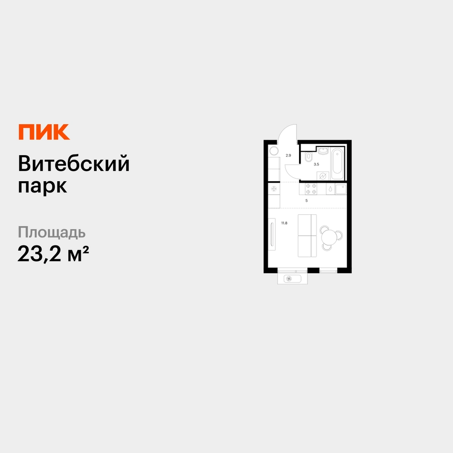 Продаётся квартира-студия площадью 23.20 кв.м на 8 этаже 12 этажного дома (Корпус 6, секция 2) проекта ПИК Витебский парк. Светлый просторный подъезд на уровне земли, функциональная планировка, большие окна, с отделкой. <br> <br>Жилой квартал «Витебский парк» находится во Фрунзенском районе Санкт-Петербурга, в 15 минутах пешком от метро «Обводный канал». А в 2027 году всего в паре минут от проекта планируют открыть станцию метро «Боровая». <br> <br>В квартал входят 3 детских сада, школа и 7 жилых домов с дворами-парками, куда не могут зайти посторонние люди и заехать автомобили. Школа на 1250 мест и детский сад на 350 мест откроются одновременно с заселением первой очереди, это значит, что жители проекта смогут отдать своих детей в новые образовательные учреждения на территории квартала. <br> <br>Во дворах приятно отдыхать, знакомиться с соседями и даже заниматься йогой, а для детей мы построим детские площадки. Рядом появятся современные спортивные площадки. На первых этажах домов откроются магазины, кафе и другие сервисы. Через весь жилой район протянется широкий пешеходный бульвар для прогулок и спорта. <br> <br>Рядом с «Витебским парком» есть всё для комфортной жизни: магазины, торговые центры, фитнес-клубы, кафе и рестораны, а ещё детские сады, школы, вузы и поликлиника. Артикул - 1005284О застройщике