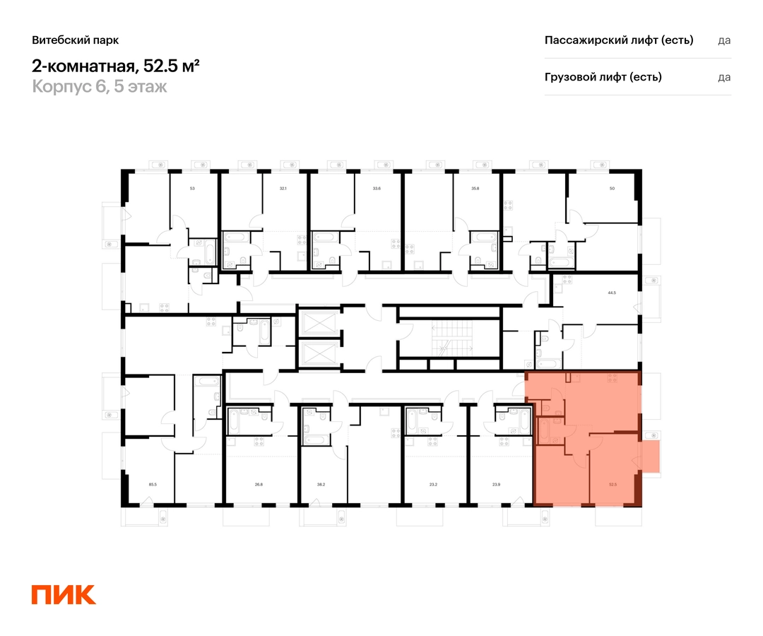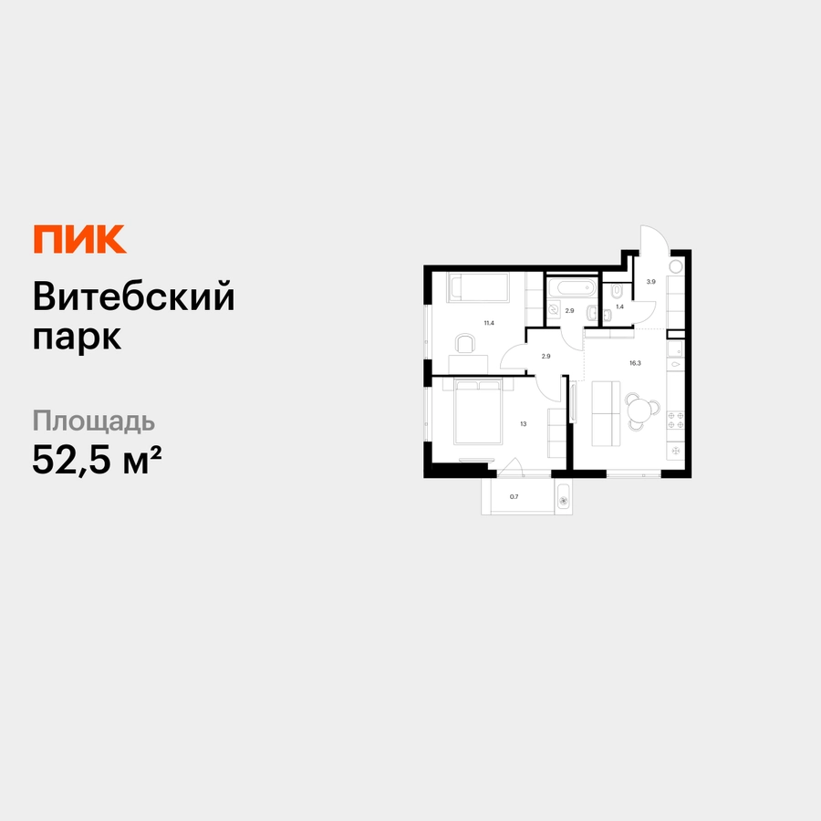 Продаётся 2-комн.квартира площадью 52.50 кв.м на 5 этаже 12 этажного дома (Корпус 6, секция 2) проекта ПИК Витебский парк. Светлый просторный подъезд на уровне земли, функциональная планировка, большие окна, с отделкой. <br> <br>Жилой квартал «Витебский парк» находится во Фрунзенском районе Санкт-Петербурга, в 15 минутах пешком от метро «Обводный канал». А в 2027 году всего в паре минут от проекта планируют открыть станцию метро «Боровая». <br> <br>В квартал входят 3 детских сада, школа и 7 жилых домов с дворами-парками, куда не могут зайти посторонние люди и заехать автомобили. Школа на 1250 мест и детский сад на 350 мест откроются одновременно с заселением первой очереди, это значит, что жители проекта смогут отдать своих детей в новые образовательные учреждения на территории квартала. <br> <br>Во дворах приятно отдыхать, знакомиться с соседями и даже заниматься йогой, а для детей мы построим детские площадки. Рядом появятся современные спортивные площадки. На первых этажах домов откроются магазины, кафе и другие сервисы. Через весь жилой район протянется широкий пешеходный бульвар для прогулок и спорта. <br> <br>Рядом с «Витебским парком» есть всё для комфортной жизни: магазины, торговые центры, фитнес-клубы, кафе и рестораны, а ещё детские сады, школы, вузы и поликлиника. Артикул - 1005246О застройщике