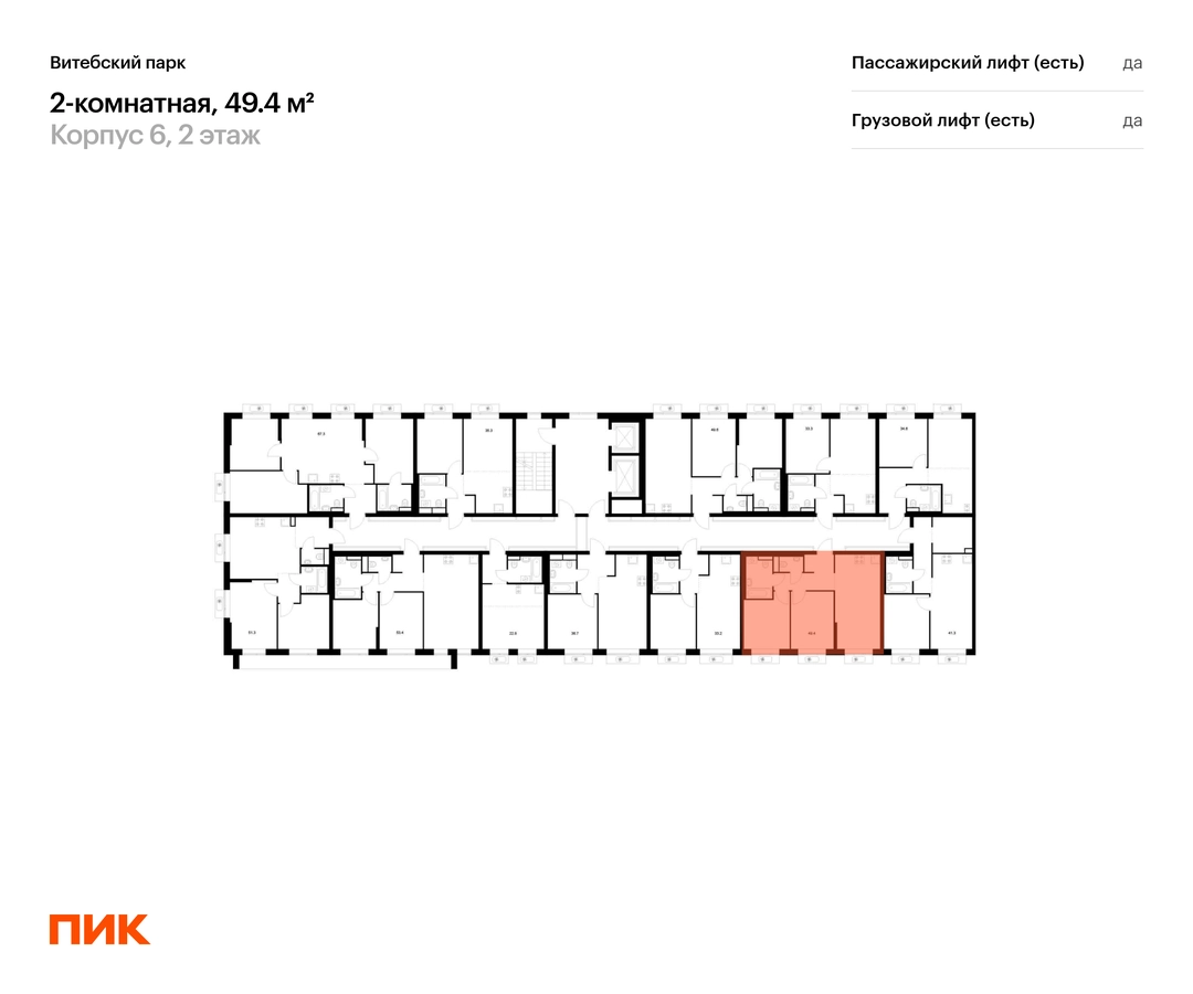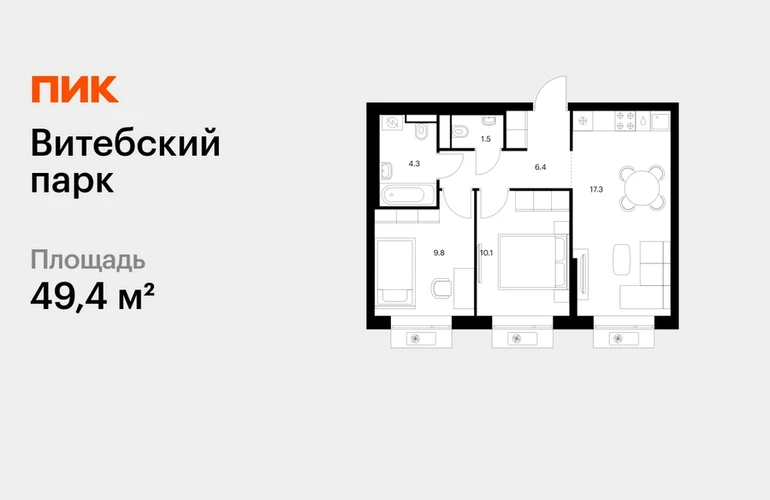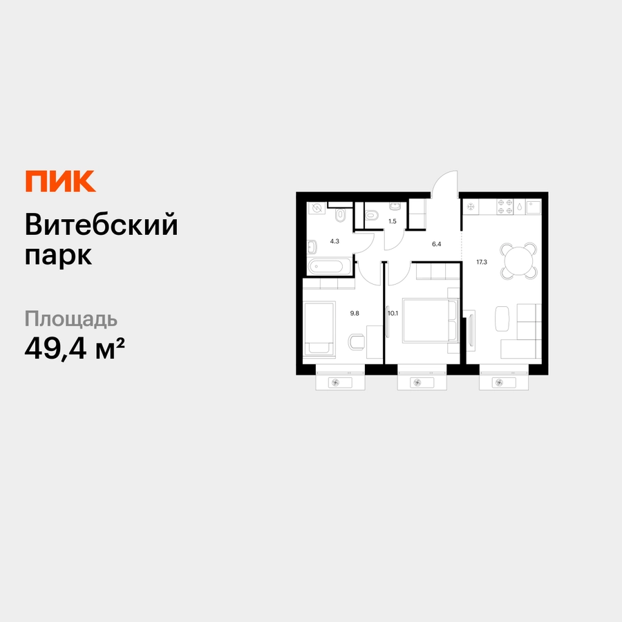 Продаётся 2-комн.квартира площадью 49.40 кв.м на 2 этаже 12 этажного дома (Корпус 6, секция 3) проекта ПИК Витебский парк. Светлый просторный подъезд на уровне земли, функциональная планировка, большие окна, с отделкой. <br> <br>Жилой квартал «Витебский парк» находится во Фрунзенском районе Санкт-Петербурга, в 15 минутах пешком от метро «Обводный канал». А в 2027 году всего в паре минут от проекта планируют открыть станцию метро «Боровая». <br> <br>В квартал входят 3 детских сада, школа и 7 жилых домов с дворами-парками, куда не могут зайти посторонние люди и заехать автомобили. Школа на 1250 мест и детский сад на 350 мест откроются одновременно с заселением первой очереди, это значит, что жители проекта смогут отдать своих детей в новые образовательные учреждения на территории квартала. <br> <br>Во дворах приятно отдыхать, знакомиться с соседями и даже заниматься йогой, а для детей мы построим детские площадки. Рядом появятся современные спортивные площадки. На первых этажах домов откроются магазины, кафе и другие сервисы. Через весь жилой район протянется широкий пешеходный бульвар для прогулок и спорта. <br> <br>Рядом с «Витебским парком» есть всё для комфортной жизни: магазины, торговые центры, фитнес-клубы, кафе и рестораны, а ещё детские сады, школы, вузы и поликлиника. Артикул - 1005350О застройщике