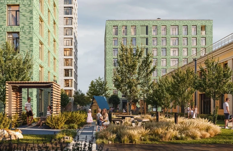 На первых этажах домов откроются магазины, кафе и полезные сервисы: чтобы сходить за свежей выпечкой к завтраку, можно будет просто спуститься на лифте. Для детей из «Шкиперского 19» на территории квартала откроются школа и детский сад.