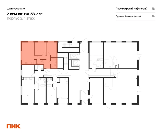 Продаётся 2-комн.квартира площадью 53.20 кв.м на 1 этаже 8 этажного дома (Корпус 2, секция 6) проекта ПИК Шкиперский 19. Светлый просторный подъезд на уровне земли, функциональная планировка, большие окна. <br> <br>Жилой квартал «Шкиперский 19» возводится в историческом районе Санкт-Петербурга — на Васильевском острове. Здания высотой от 8 до 12 этажей выполнены в природных оттенках, поэтому гармонично вписываются в архитектурный ландшафт Васильевского острова. <br> <br>В квартирах «Шкиперского 19» можно выбрать квартиру с видом на Финский залив. А из множества уникальных планировок — найти именно ту, которая подходит под ваши пожелания. Здесь есть квартиры с кухнями-гостиными, мастер-спальнями, двумя санузлами, гардеробными и отдельными постирочными. Во втором корпусе на верхних этажах будут индивидуальные крытые террасы, где можно проводить время в любое время года, ведь все террасы крытые. В проекте предусмотрены высокие потолки и окна в пол. В квартирах первого корпуса будет предчистовая отделка, во втором — квартиры без отделки. <br> <br>На первых этажах домов откроются магазины, кафе и полезные сервисы: чтобы сходить за свежей выпечкой к завтраку, можно будет просто спуститься на лифте. Для детей из «Шкиперского 19» на территории квартала откроются школа и детский сад. <br> <br>Парадный вход «Шкиперского 19» — просторное и светлое гранд-лобби в стиле джапанди. В нём будут сочетаться элементы японских и скандинавских традиций дизайна. Помимо зоны ожидания с мягкой мебелью, здесь будет детская комната и гостевой санузел. <br> <br>В парадных предусмотрены комнаты для колясок и лапомойки для собак, тихие и быстрые лифты. Автомобиль можно будет оставить в подземном паркинге, а крупные и сезонные вещи — в индивидуальной кладовой. <br> <br>Доехать от квартала до Невского проспекта можно за 15 минут, до ЗСД — за 12 минут. В 20 минутах ходьбы находится станция метро «Приморская», и в 2030 году планируется открытие станции «Гавань» в 5 минутах от проекта. <br> <br>Проект принадлежит «Серии плюс». В «Серию плюс» входят жилые кварталы с повышенным уровнем комфорта и уникальной архитектурой. У квартир разнообразные планировки: можно выбрать квартиру с мастер-спальней, где есть отдельная ванная комната, с просторной кухней-гостиной, с двумя санузлами, с гардеробной или постирочной. В светлых уютных лобби с дизайнерской отделкой предусмотрены колясочная и гостевой санузел. Артикул - 977370О застройщике