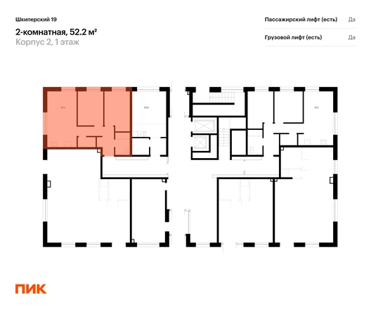 Продаётся 2-комн.квартира площадью 52.20 кв.м на 1 этаже 8 этажного дома (Корпус 2, секция 7) проекта ПИК Шкиперский 19. Светлый просторный подъезд на уровне земли, функциональная планировка, большие окна. <br> <br>Жилой квартал «Шкиперский 19» возводится в историческом районе Санкт-Петербурга — на Васильевском острове. Здания высотой от 8 до 12 этажей выполнены в природных оттенках, поэтому гармонично вписываются в архитектурный ландшафт Васильевского острова. <br> <br>В квартирах «Шкиперского 19» можно выбрать квартиру с видом на Финский залив. А из множества уникальных планировок — найти именно ту, которая подходит под ваши пожелания. Здесь есть квартиры с кухнями-гостиными, мастер-спальнями, двумя санузлами, гардеробными и отдельными постирочными. Во втором корпусе на верхних этажах будут индивидуальные крытые террасы, где можно проводить время в любое время года, ведь все террасы крытые. В проекте предусмотрены высокие потолки и окна в пол. В квартирах первого корпуса будет предчистовая отделка, во втором — квартиры без отделки. <br> <br>На первых этажах домов откроются магазины, кафе и полезные сервисы: чтобы сходить за свежей выпечкой к завтраку, можно будет просто спуститься на лифте. Для детей из «Шкиперского 19» на территории квартала откроются школа и детский сад. <br> <br>Парадный вход «Шкиперского 19» — просторное и светлое гранд-лобби в стиле джапанди. В нём будут сочетаться элементы японских и скандинавских традиций дизайна. Помимо зоны ожидания с мягкой мебелью, здесь будет детская комната и гостевой санузел. <br> <br>В парадных предусмотрены комнаты для колясок и лапомойки для собак, тихие и быстрые лифты. Автомобиль можно будет оставить в подземном паркинге, а крупные и сезонные вещи — в индивидуальной кладовой. <br> <br>Доехать от квартала до Невского проспекта можно за 15 минут, до ЗСД — за 12 минут. В 20 минутах ходьбы находится станция метро «Приморская», и в 2030 году планируется открытие станции «Гавань» в 5 минутах от проекта. <br> <br>Проект принадлежит «Серии плюс». В «Серию плюс» входят жилые кварталы с повышенным уровнем комфорта и уникальной архитектурой. У квартир разнообразные планировки: можно выбрать квартиру с мастер-спальней, где есть отдельная ванная комната, с просторной кухней-гостиной, с двумя санузлами, с гардеробной или постирочной. В светлых уютных лобби с дизайнерской отделкой предусмотрены колясочная и гостевой санузел. Артикул - 977426О застройщике
