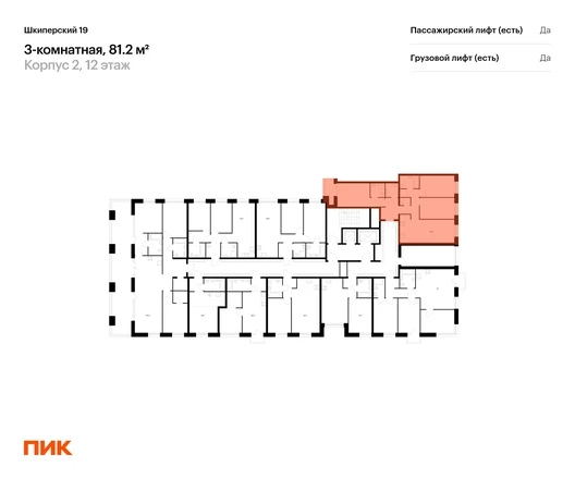 Продаётся 3-комн.квартира площадью 81.20 кв.м на 12 этаже 12 этажного дома (Корпус 2, секция 5) проекта ПИК Шкиперский 19. Светлый просторный подъезд на уровне земли, функциональная планировка, большие окна. <br> <br>Жилой квартал «Шкиперский 19» возводится в историческом районе Санкт-Петербурга — на Васильевском острове. Здания высотой от 8 до 12 этажей выполнены в природных оттенках, поэтому гармонично вписываются в архитектурный ландшафт Васильевского острова. <br> <br>В квартирах «Шкиперского 19» можно выбрать квартиру с видом на Финский залив. А из множества уникальных планировок — найти именно ту, которая подходит под ваши пожелания. Здесь есть квартиры с кухнями-гостиными, мастер-спальнями, двумя санузлами, гардеробными и отдельными постирочными. Во втором корпусе на верхних этажах будут индивидуальные крытые террасы, где можно проводить время в любое время года, ведь все террасы крытые. В проекте предусмотрены высокие потолки и окна в пол. В квартирах первого корпуса будет предчистовая отделка, во втором — квартиры без отделки. <br> <br>На первых этажах домов откроются магазины, кафе и полезные сервисы: чтобы сходить за свежей выпечкой к завтраку, можно будет просто спуститься на лифте. Для детей из «Шкиперского 19» на территории квартала откроются школа и детский сад. <br> <br>Парадный вход «Шкиперского 19» — просторное и светлое гранд-лобби в стиле джапанди. В нём будут сочетаться элементы японских и скандинавских традиций дизайна. Помимо зоны ожидания с мягкой мебелью, здесь будет детская комната и гостевой санузел. <br> <br>В парадных предусмотрены комнаты для колясок и лапомойки для собак, тихие и быстрые лифты. Автомобиль можно будет оставить в подземном паркинге, а крупные и сезонные вещи — в индивидуальной кладовой. <br> <br>Доехать от квартала до Невского проспекта можно за 15 минут, до ЗСД — за 12 минут. В 20 минутах ходьбы находится станция метро «Приморская», и в 2030 году планируется открытие станции «Гавань» в 5 минутах от проекта. <br> <br>Проект принадлежит «Серии плюс». В «Серию плюс» входят жилые кварталы с повышенным уровнем комфорта и уникальной архитектурой. У квартир разнообразные планировки: можно выбрать квартиру с мастер-спальней, где есть отдельная ванная комната, с просторной кухней-гостиной, с двумя санузлами, с гардеробной или постирочной. В светлых уютных лобби с дизайнерской отделкой предусмотрены колясочная и гостевой санузел. Артикул - 977359О застройщике