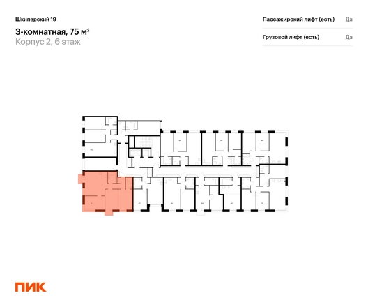 Продаётся 3-комн.квартира площадью 75.00 кв.м на 4 этаже 12 этажного дома (Корпус 2, секция 1) проекта ПИК Шкиперский 19. Светлый просторный подъезд на уровне земли, функциональная планировка, большие окна. <br> <br>Жилой квартал «Шкиперский 19» возводится в историческом районе Санкт-Петербурга — на Васильевском острове. Здания высотой от 8 до 12 этажей выполнены в природных оттенках, поэтому гармонично вписываются в архитектурный ландшафт Васильевского острова. <br> <br>В квартирах «Шкиперского 19» можно выбрать квартиру с видом на Финский залив. А из множества уникальных планировок — найти именно ту, которая подходит под ваши пожелания. Здесь есть квартиры с кухнями-гостиными, мастер-спальнями, двумя санузлами, гардеробными и отдельными постирочными. Во втором корпусе на верхних этажах будут индивидуальные крытые террасы, где можно проводить время в любое время года, ведь все террасы крытые. В проекте предусмотрены высокие потолки и окна в пол. В квартирах первого корпуса будет предчистовая отделка, во втором — квартиры без отделки. <br> <br>На первых этажах домов откроются магазины, кафе и полезные сервисы: чтобы сходить за свежей выпечкой к завтраку, можно будет просто спуститься на лифте. Для детей из «Шкиперского 19» на территории квартала откроются школа и детский сад. <br> <br>Парадный вход «Шкиперского 19» — просторное и светлое гранд-лобби в стиле джапанди. В нём будут сочетаться элементы японских и скандинавских традиций дизайна. Помимо зоны ожидания с мягкой мебелью, здесь будет детская комната и гостевой санузел. <br> <br>В парадных предусмотрены комнаты для колясок и лапомойки для собак, тихие и быстрые лифты. Автомобиль можно будет оставить в подземном паркинге, а крупные и сезонные вещи — в индивидуальной кладовой. <br> <br>Доехать от квартала до Невского проспекта можно за 15 минут, до ЗСД — за 12 минут. В 20 минутах ходьбы находится станция метро «Приморская», и в 2030 году планируется открытие станции «Гавань» в 5 минутах от проекта. <br> <br>Проект принадлежит «Серии плюс». В «Серию плюс» входят жилые кварталы с повышенным уровнем комфорта и уникальной архитектурой. У квартир разнообразные планировки: можно выбрать квартиру с мастер-спальней, где есть отдельная ванная комната, с просторной кухней-гостиной, с двумя санузлами, с гардеробной или постирочной. В светлых уютных лобби с дизайнерской отделкой предусмотрены колясочная и гостевой санузел. Артикул - 977000О застройщике