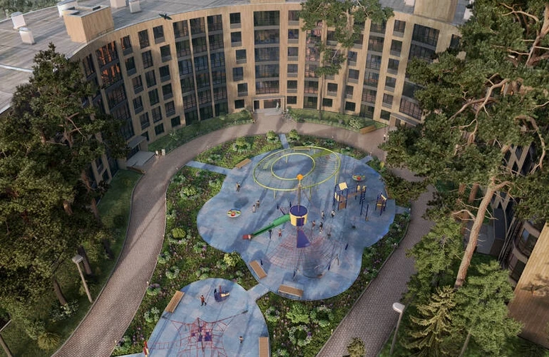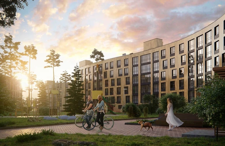 ЖК е.квартал Мир внутри» – это 19 малоэтажных корпусов (до 6 этажей) на территории бывшего пансионата «Дюны», в окружении хвойного леса и в шаговой доступности от песчаного пляжа.
